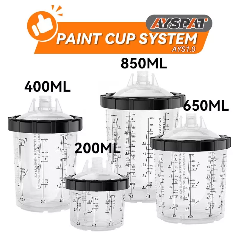 LeSystème de pot de peinture jetable AYS1.1améliore l'expérience de pulvérisation manuelle, faisant du mélange et de la pulvérisation un véritable plaisir tout en simplifiant le nettoyage et la peinture de la peinture.