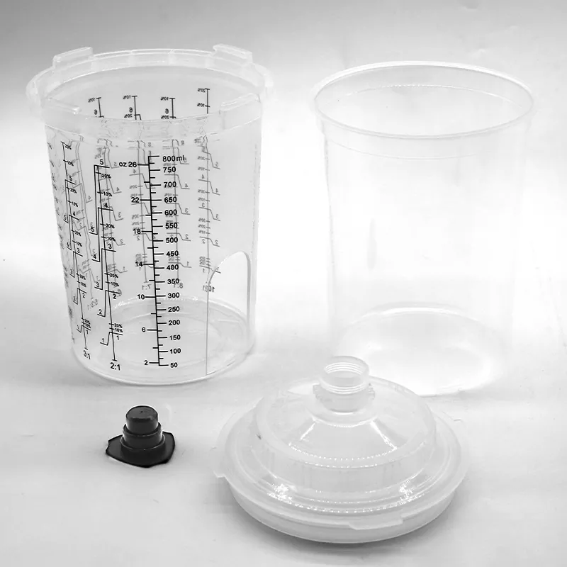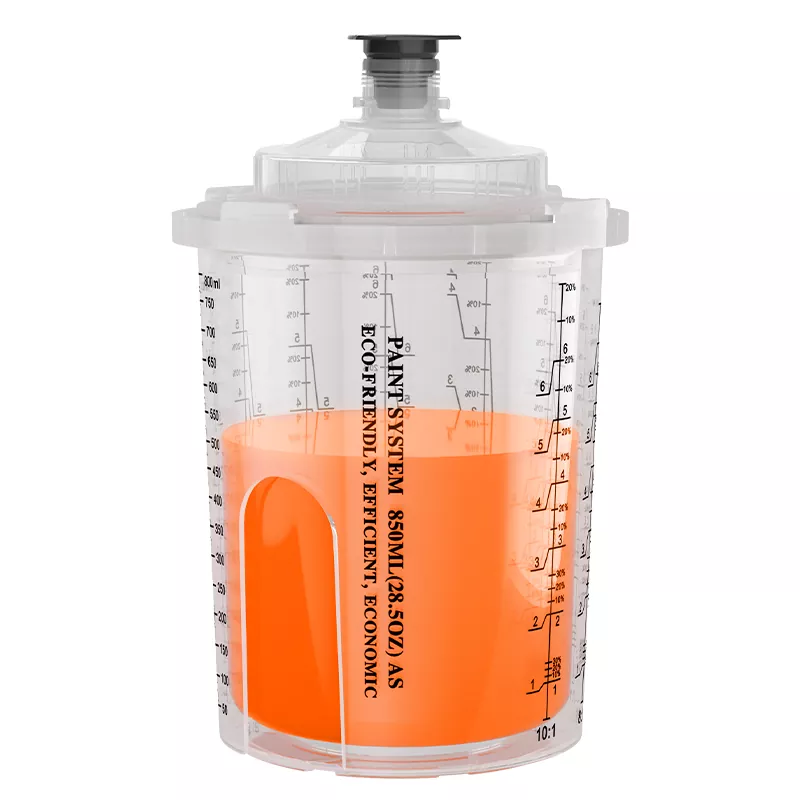 La tasse de pistolet à pulvérisation jetable de 850 ml a été complètement redessinée pour faciliter la pulvérisation, plus propre et plus efficace. La conception de verrouillage en plusieurs étapes de la buse améliore le joint entre la buse et le pistolet de pulvérisation. La conception à double couche en dôme du couvercle aide à éliminer les éclaboussures tout en améliorant considérablement sa ténacité à la flexion. Une conception de jante spéciale rend le couvercle plus facile à saisir. Une conception instantanée intégrée facilite l'assemblage du couvercle, et chaque coupe extérieure propose une fenêtre d'accès claire pour un retrait de couvercle facile. Un bouchon d'étanchéité large et plat assure une stabilité ajoutée lorsqu'il est utilisé comme base.