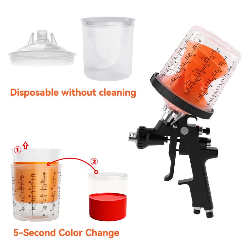 Legobelet jetable pour pistolet pulvérisateur ne nécessite aucun nettoyage après utilisation ; jetez simplement la tasse intérieure pour changer rapidement de couleur, réduisant ainsi l'intervalle de changement de couleur de 20 minutes à 5 secondes, doublant ainsi la production quotidienne. Le couvercle est doté d'un filtre fin intégré pour filtrer efficacement les impuretés, assurant une pulvérisation uniforme et douce, résultant en une finition de meilleure qualité.