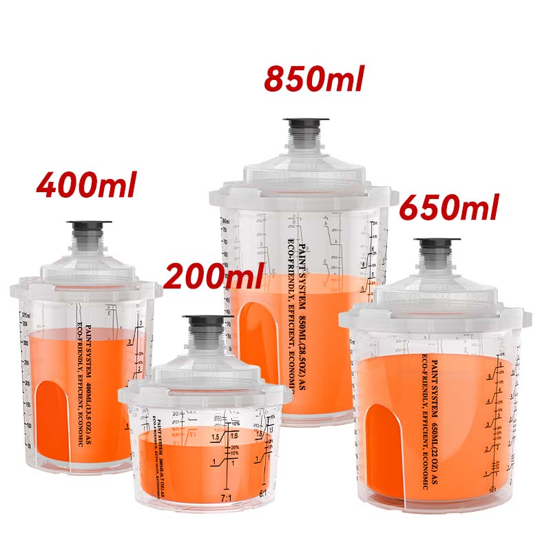 - L'Ays3.1tasse de pulvérisation jetableest fait de matériaux PP et PE résistants au solvant et résistants à l'impact. Il soutient un large éventail de revêtements, notamment la peinture en latex, la peinture à base d'huile et le vernis, éliminant efficacement les problèmes de corrosion couramment associés aux tasses de pulvérisation traditionnelles.