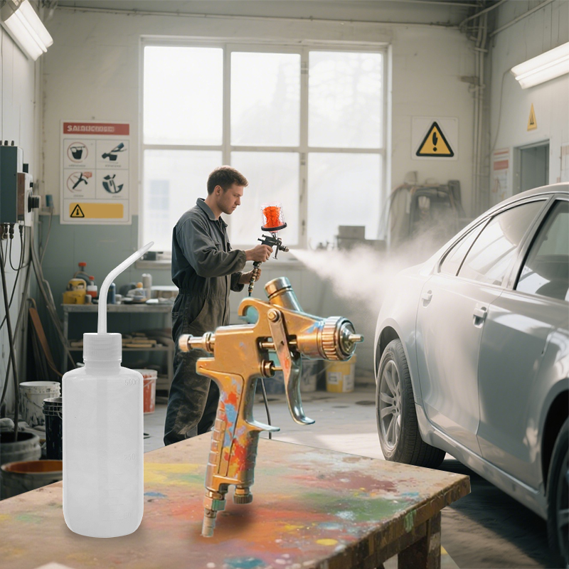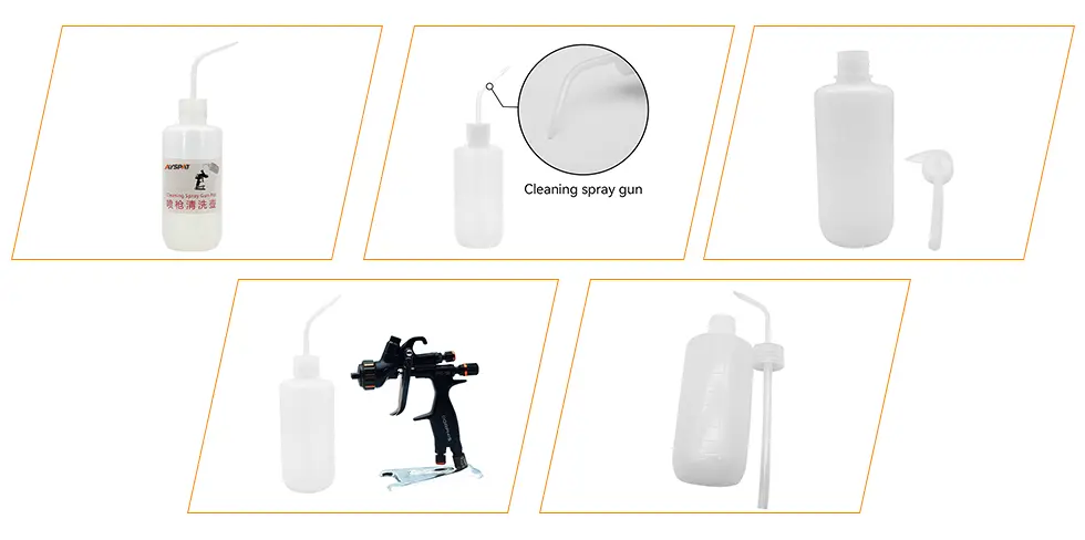Ayspat Spray Gun Washing Pot est un outil de nettoyage efficace du pistolet à pulvérisation avec un excellent effet de nettoyage. Il peut rapidement rincer la peinture restant dans le pistolet à pulvérisation, ce qui peut mieux protéger les pièces de précision à l'intérieur du pistolet de pulvérisation. Le lavage du pistolet à pulvérisation est facile à utiliser, et l'intensité et la direction du flux liquide peuvent être contrôlées avec précision en serrant le corps de la bouteille. Après l'opération de peinture, utilisez le pot de lavage du pistolet pour charger le solvant pour rincer les taches des tuyaux complexes à l'intérieur du pistolet de pulvérisation, qui peuvent maintenir le pistolet de pulvérisation et prolonger considérablement sa durée de vie. La bouteille de lavage du pistolet est faite de matériau PP doux et léger, qui résiste à la corrosion par des solvants tels que l'acétone et le toluène. C'est une solution idéale pour l'entretien de votre pistolet à pulvérisation.