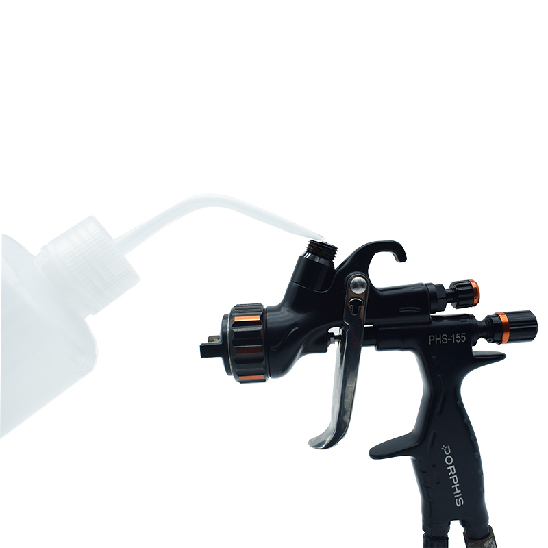 Le lavage de pistolet à pulvérisation utilise une buse incurvée unique qui peut pénétrer profondément dans le pistolet de pulvérisation et rincer rapidement la peinture et la saleté des lacunes à l'intérieur du pistolet. Le nettoyage en profondeur peut effectivement empêcher le colmatage causé par la peinture séchée, améliorer les performances de pulvérisation et prolonger la durée de vie du pistolet de pulvérisation.